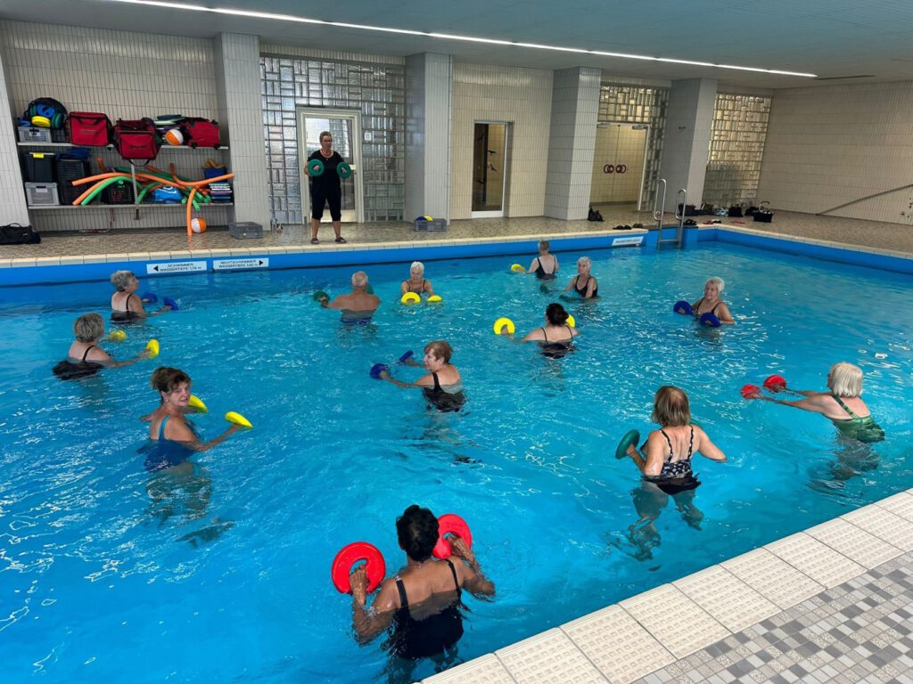 Mit verschiedenen „Wasser-Sportgeräten“ haben wir die Möglichkeit, die Übungsstunden abwechslungsreich zu gestalten und uns mit viel Spaß aktiv zu bewegen. Neben Poolnudeln, Schwimmbrettern, Handschuhen usw. kommen auch Disc des Öfteren zum Einsatz. Wassergymnastik bietet vielfältige Bewegungsmöglichkeiten und fördert so unsere körperliche Fitness.